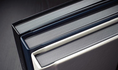 筋付け、折り、丁合までのフルフラット製本を自動で行うもので、銀塩写真、インクジェットプリント、インディゴプリント等の様々なメディアに対応しています。丁合後は加熱、プレスによる圧工程を行います。加熱によりイージーシートが定着し、よりフラットな状態になります。別途オーブンユニット、プレッシャーユニットをラインアップしています。